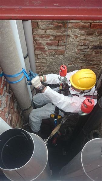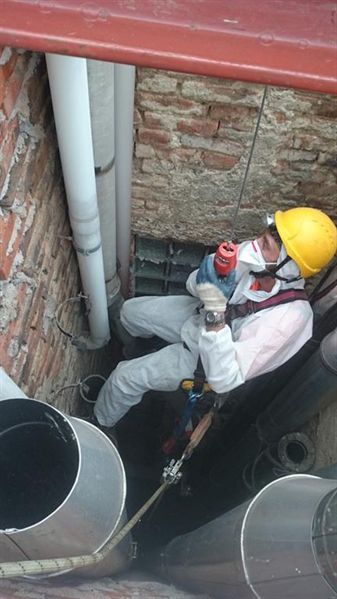 V ulici Sušilova v Brně jsme provedli demontáž a odstranění azbestových komínů ze světlíku bytového domu. Tělesa komínů jsme po chemické neutralizaci azbestu a demontáži odvezli na ekologické úložiště nebezpečného odpadu. Komíny s obsahem azbestu byly nahrazeny novými , vyrobenými z nezávadných materiálů.