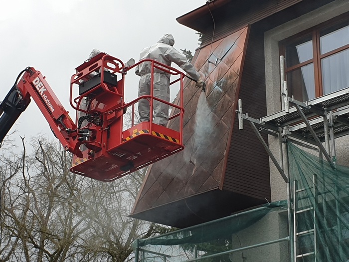 Ze střechy ubytovny posluchačů ve Vojenském ubytovacím zařízení Komorní Hrádek jsme odstranili střešní krytinu s obsahem azbestu, Eternit včetně lepenky. Jednalo se o 46.860 kg materiálu s obsahem azbestu, které jsme postupně neutralizovali a zabránili tak uvolňování azbestových vláken do ovzduší při manipulaci se střešní krytinou a následné kontaminaci ovzduší a okolí stavby. Střešní krytinu s azbestem jsme následně odstranili ze střechy o ploše 1.345 m2.