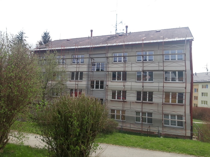 Ve Vyšším Brodě na ulici Pohraniční Stráže 310 jsme z bytového domu odstranili eternitovou střechu / eternit - azbestocementovou střešní krytinu/ a současně také azbestocementové obložení štítu domu.